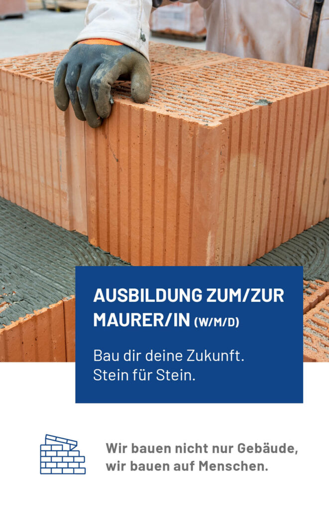 Bau dir deine Zukunft. Stein für Stein. Wir bilden Maurer (w/m/d) aus und wir suchen nicht irgendwen. Wir suchen dich. Jemanden, der Lust hat, etwas Bleibendes zu schaffen. Der im Team aufgeht und stolz auf seine Arbeit ist. Wenn du das bist: Bewirb dich jetzt und werde Teil der Heining-Familie.